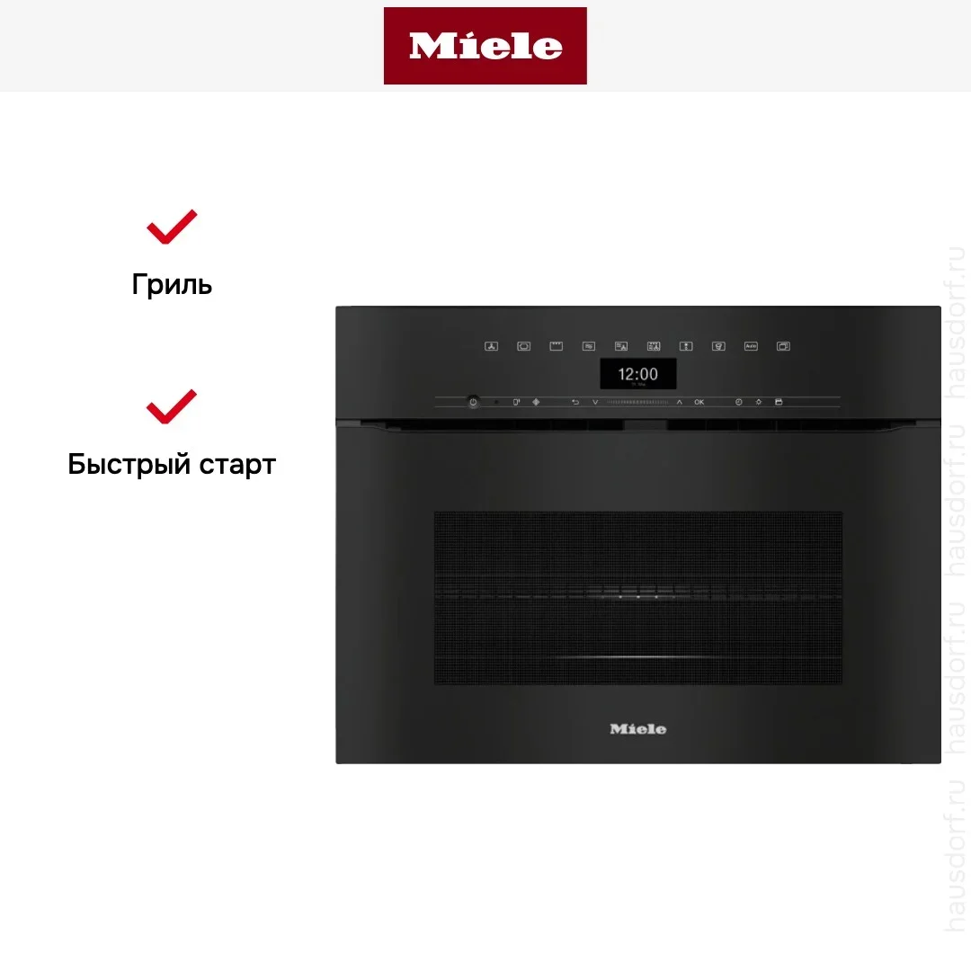 Сенсорный TFT-дисплей M Touch с графическим интерфейсом. Wi-Fi Miele@home. BrilliantLight LED-подсветка. Механизм push-to-open — дверца открывается лёгким нажатием на фасад, без ручки. Для минималистичных кухонь без фурнитуры.