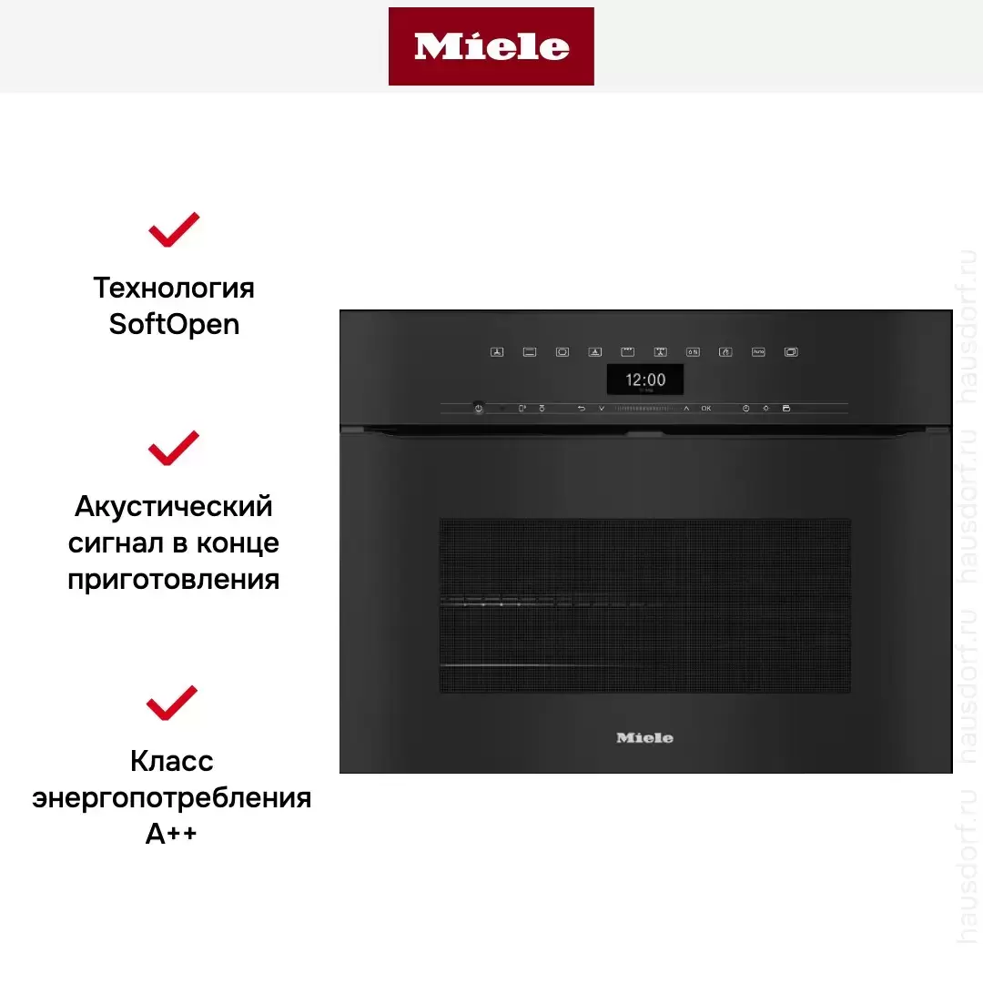 Сенсорный TFT-дисплей M Touch. Wi-Fi Miele@home — удалённый контроль через приложение. Проводной термощуп с разъёмом в камере. LED BrilliantLight. Корпус BPX без ручек с push-to-open — открывается лёгким нажатием. Хорошо сочетается в колонне с остальной техникой Miele Generation 7000 по единому дизайну.