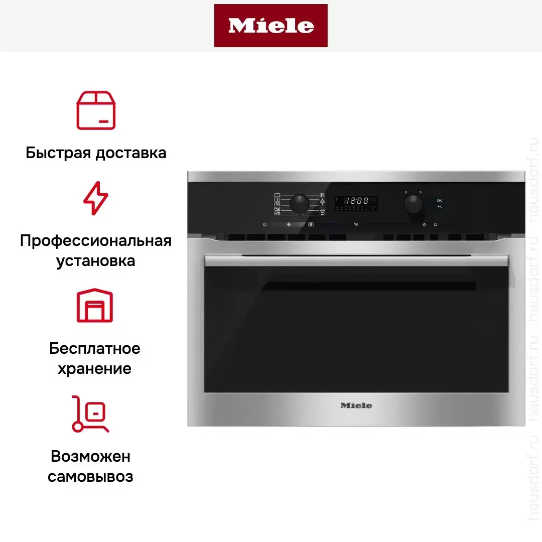 | Дополнительные параметры | Дисплей EasyControl Точная регулировка температуры Электронное управление мощностью СВЧ Функция поддержания тепла Кухонный будильник Сохранение настроек времени при отключении Программирование «Старт-Стоп» Программируемое время приготовления пищи Рекомендация температуры Звуковой сигнал при достижении требуемой температуры Рекомендуемая мощность СВЧ для каждого режима работы Быстрый старт Фронт из нержавеющей стали с покрытием CleanSteel Защитное отключение Контактный выключатель в дверце |