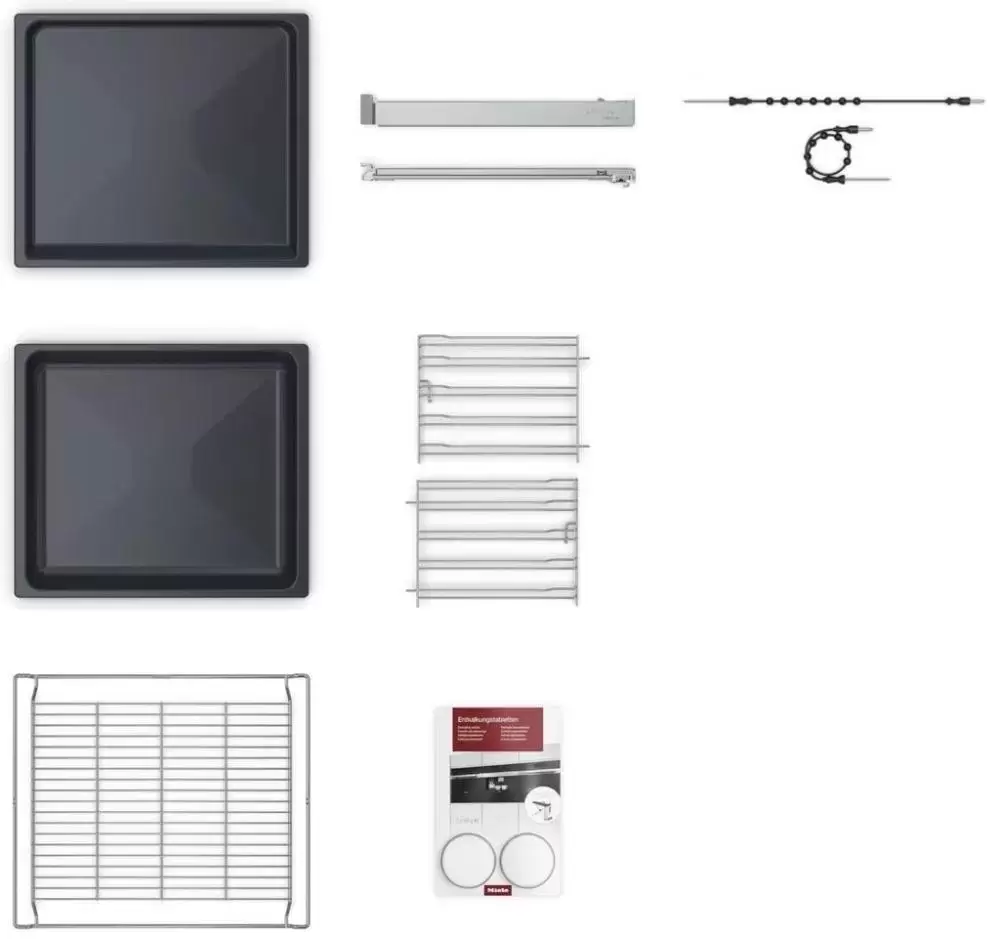 | Комплектация | Телескопические направляющие (1-уровневые) Телескопические направляющие FlexiClips с покрытием Pyrofit Термощуп Противень и решётка для выпечки и жарки с покрытием Pyrofit Универсальный противень с покрытием PerfectClean Противень с покрытием PerfectClean Таблетки для удаления накипи |