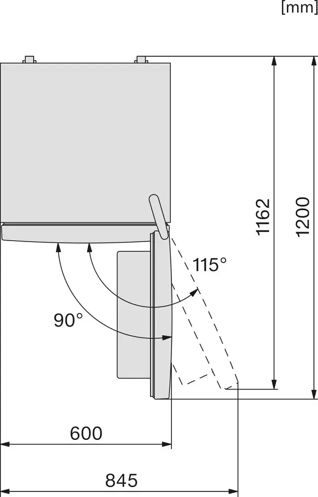 | Угол открывания двери (°) | 115 |