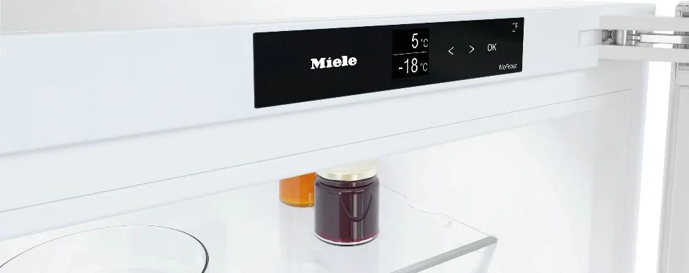 Внешний сенсорный дисплей на дверце — управление температурой, режимами, уведомлениями без открывания. Miele@home для удалённого мониторинга.