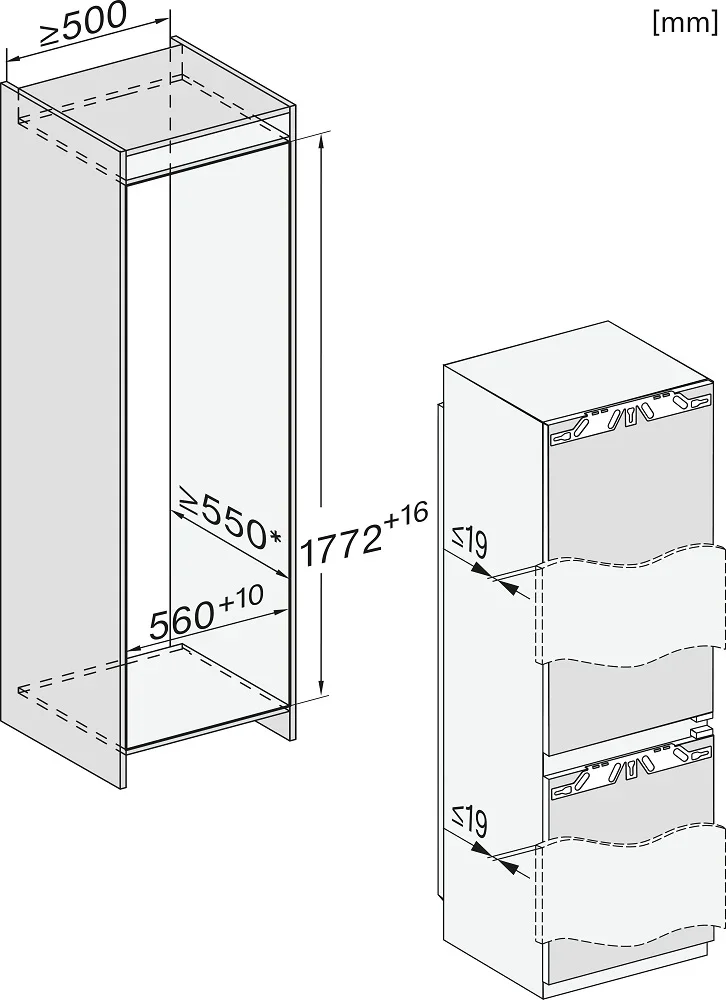 Тип: встраиваемый. Вид: холодильник с морозильником.