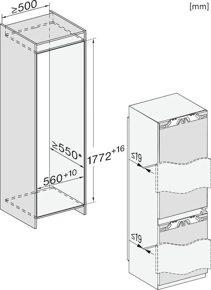 | Дополнительные параметры | Система VarioRoom Активное увлажнение в верхнем ящике зоны свежести Место для противня ComfortSize Сухая задняя стенка: покрытие CleanSteel Максимально допустимый вес фасада: 18 кг |