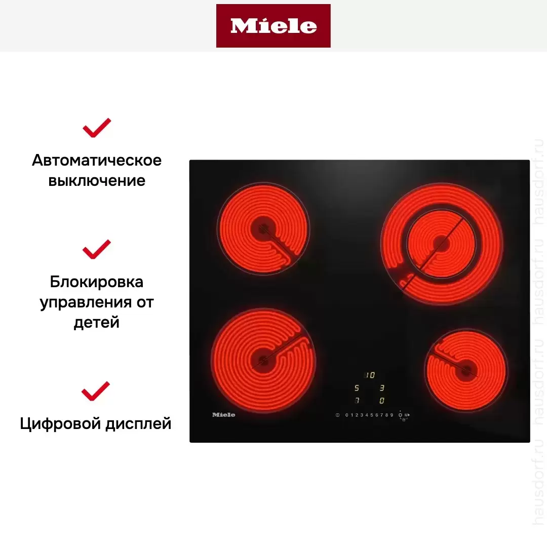 Сенсорная панель с регуляторами мощности 0-9 для каждой зоны. Без интеграции с приложением Miele@home.