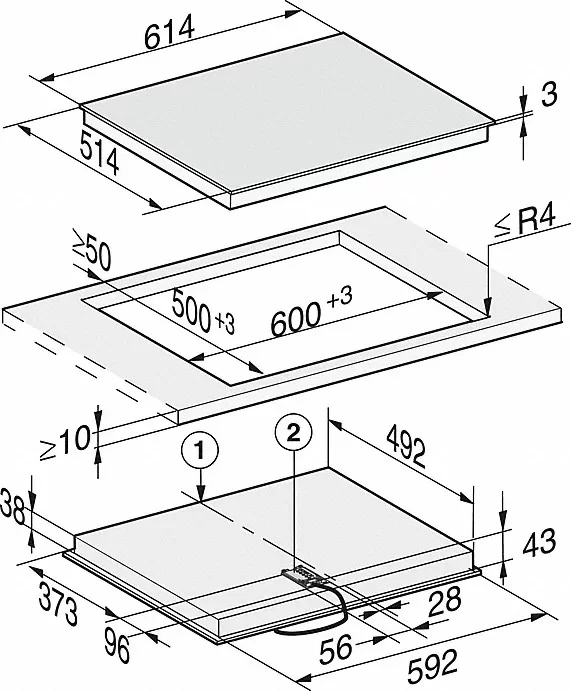 Габариты 606×527 мм, вырез 560×490 мм. Мощность 7,4 кВт — линия 380 В или 220 В 32 А. Сборка Miele (Германия). Brera — авторизованный дилер Miele: гарантия 2 года, доставка и подключение мастером Miele в Москве включены в стоимость.