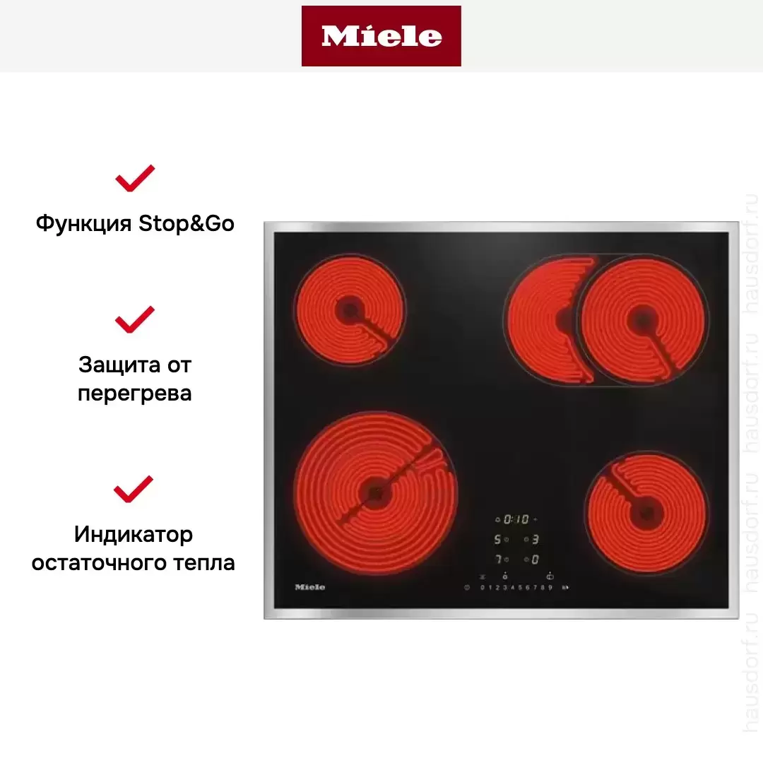 Сенсорная панель с регуляторами мощности для каждой зоны. Без Miele@home и Con@ctivity.