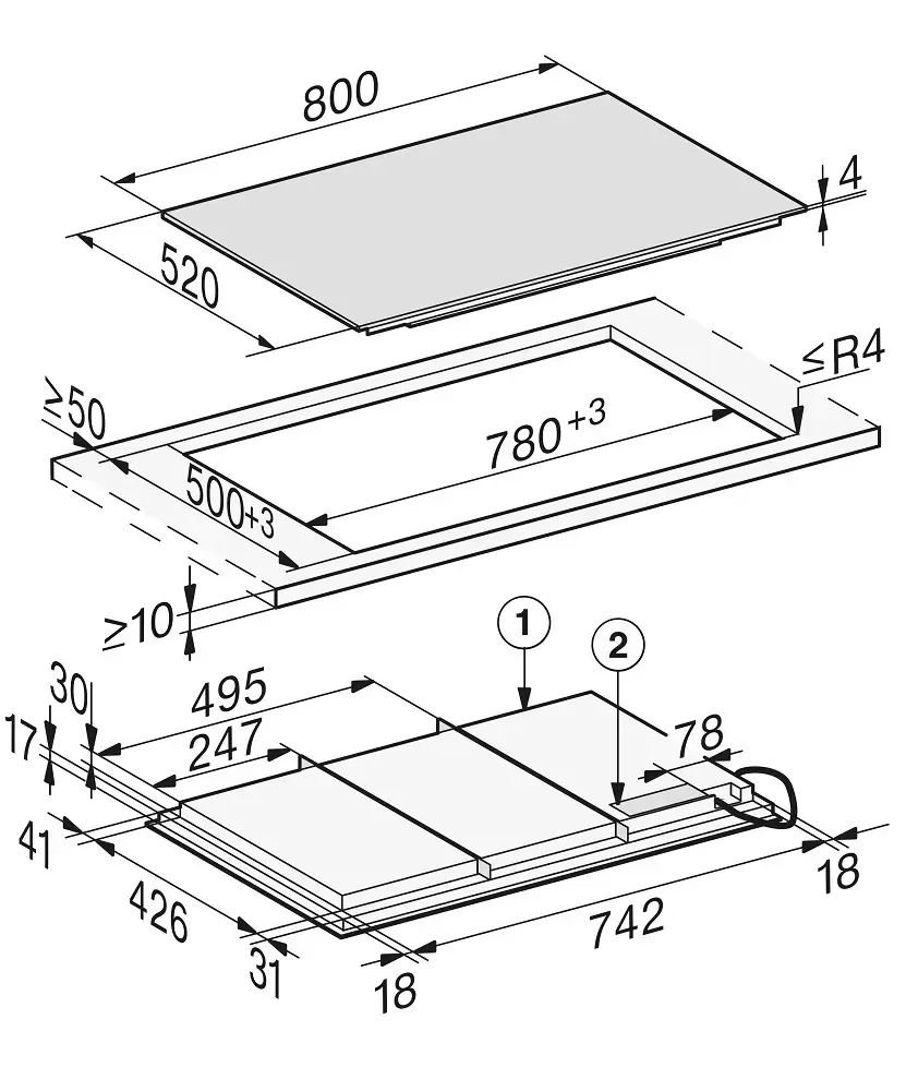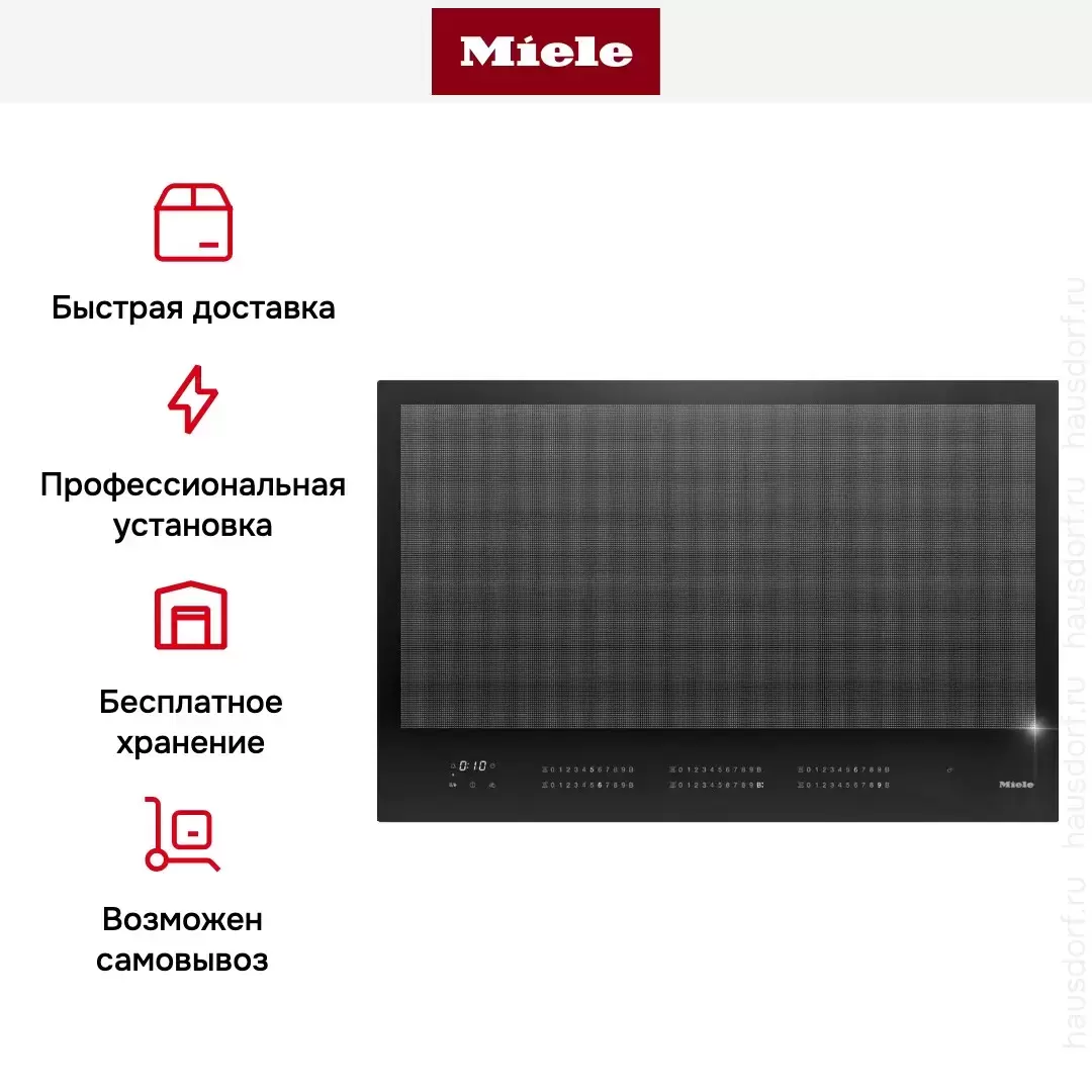 Габариты 806×527 мм, вырез 750×490 мм. Мощность 7,7 кВт — линия 380 В или 220 В 32 А. Сборка Miele (Германия). Brera — авторизованный дилер Miele в Москве: гарантия 2 года, доставка и подключение сертифицированным мастером Miele включены в стоимость.