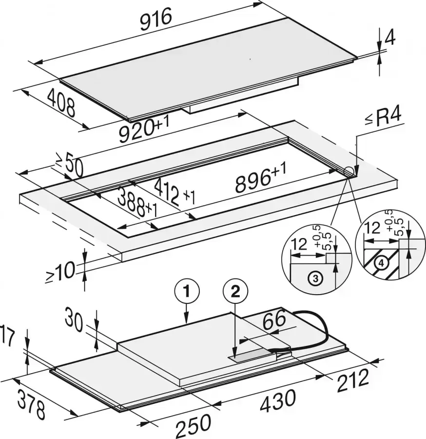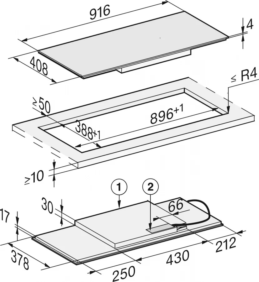 | Дополнительные параметры | Два варианта встраивания: сверху и заподлицо 2 зоны объединения PowerFlex Управление SmartSelect Размер ниши (Ш x Г): 89.6х38.8 (монтаж сверху) 89.6 / 92х38.8 / 41.2 (вырез ступенькой для монтажа заподлицо) |
