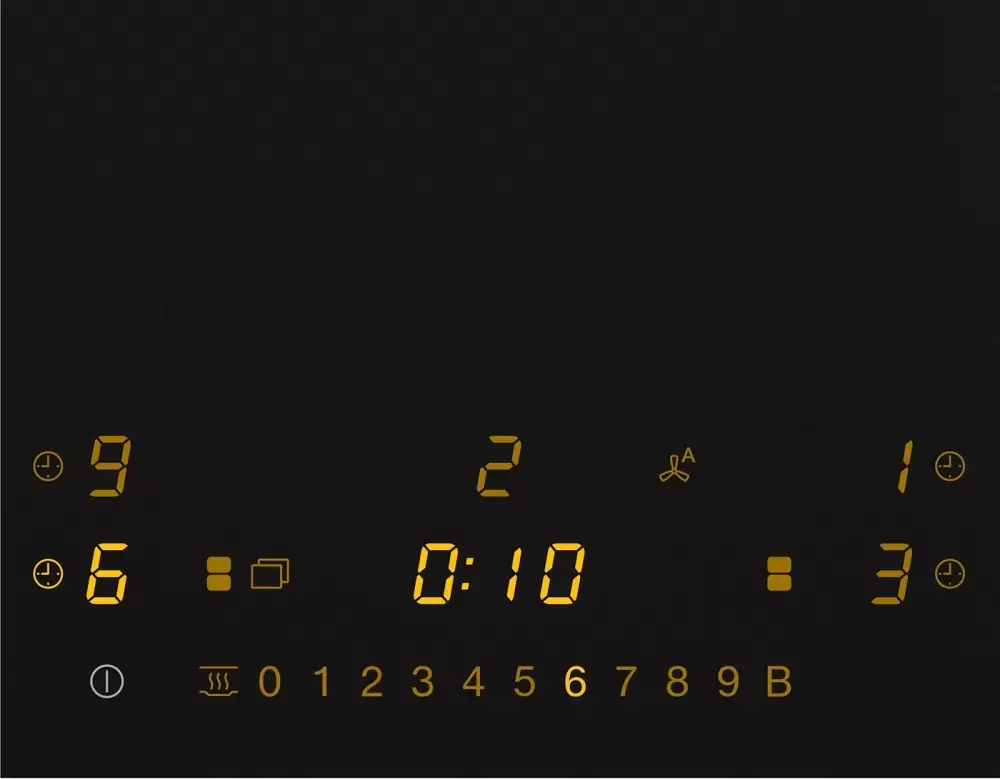 Регулируемая индукционная зона от 150 до 230 мм, автоматически распознаёт диаметр посуды. Ковшик 120 мм греется только своей площадью, сковорода 240 мм — всей. Экономит электричество и бережёт стеклокерамику от перегрева незанятых зон.
