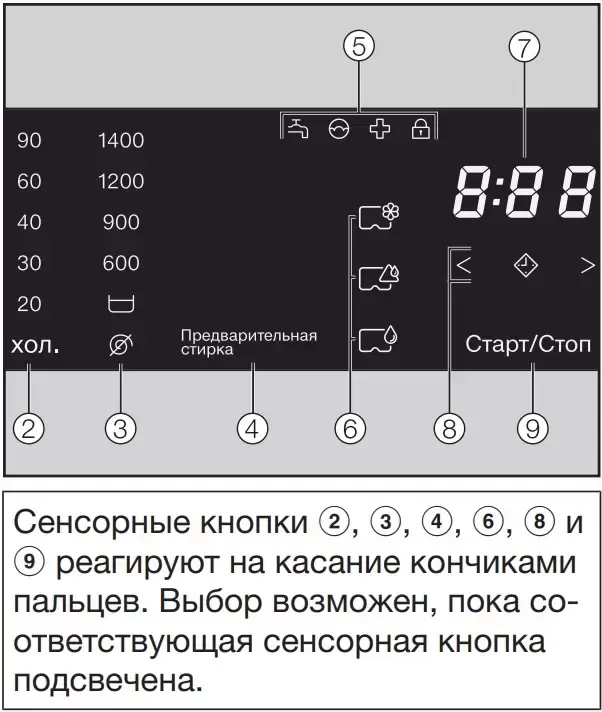 | Элементы управления | Сенсорные кнопки Поворотный программатор |