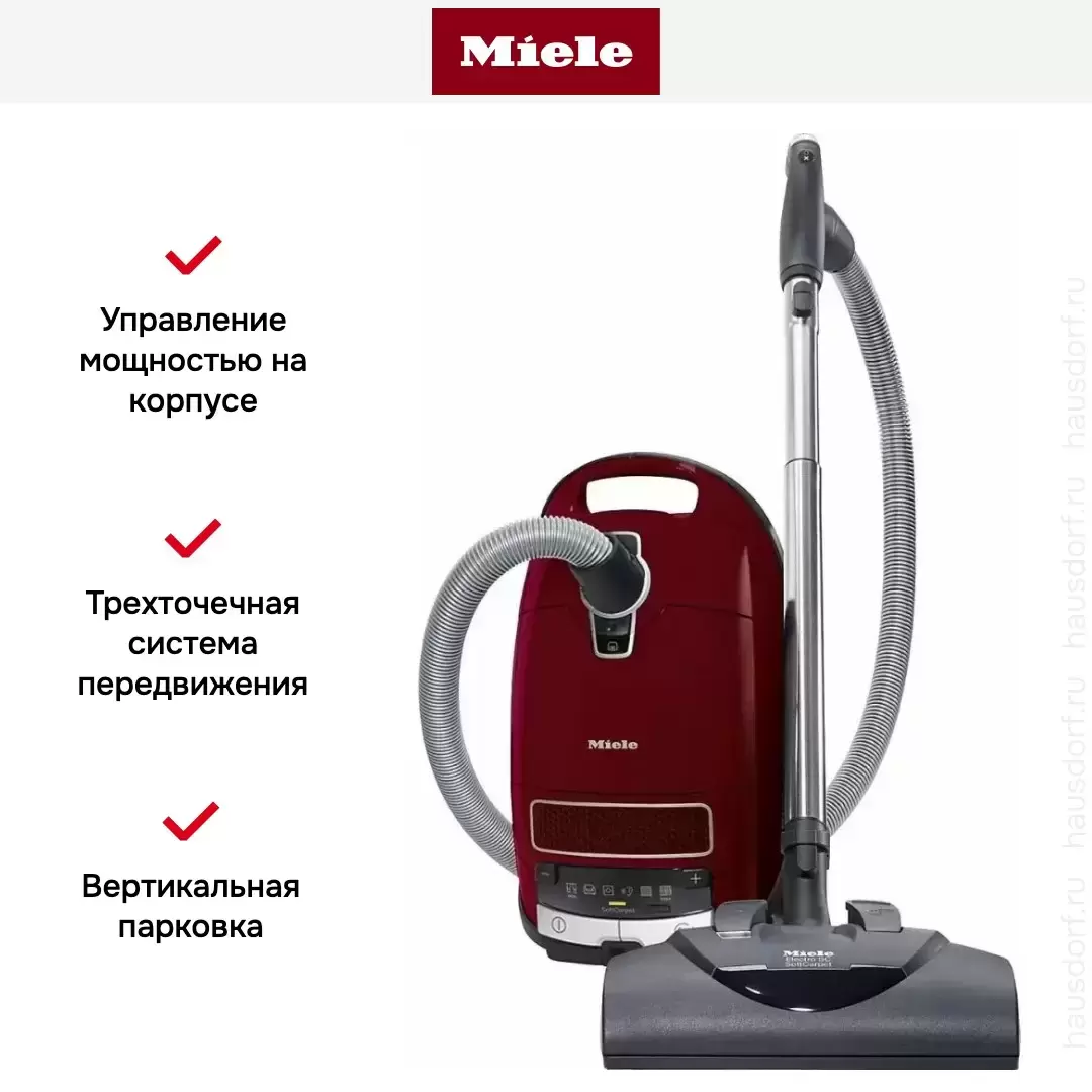 Пылесос Miele SGEA3 Complete C3 Cat&Dog ежевичный красный — флагманская модель в линейке Miele (немецкого производства), пылесос премиум-класса.