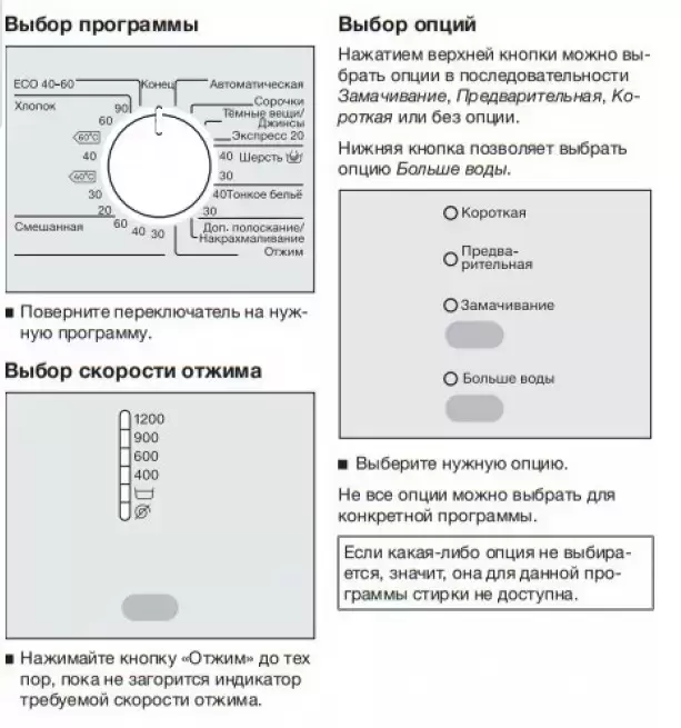| Дополнительные функции | Стирка холодной водой Дополнительное полоскание |
