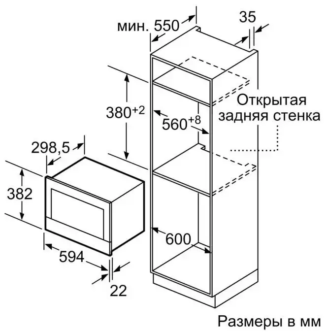 | Размеры ниши для встраивания (ВxШxГ) (cм) | 36.2-38.2х56-56.8х30 |