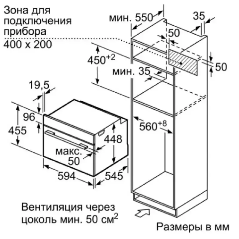 | Размеры ниши для встраивания (ВxШxГ) (cм) | 45-45.2х56-56.8х55 |