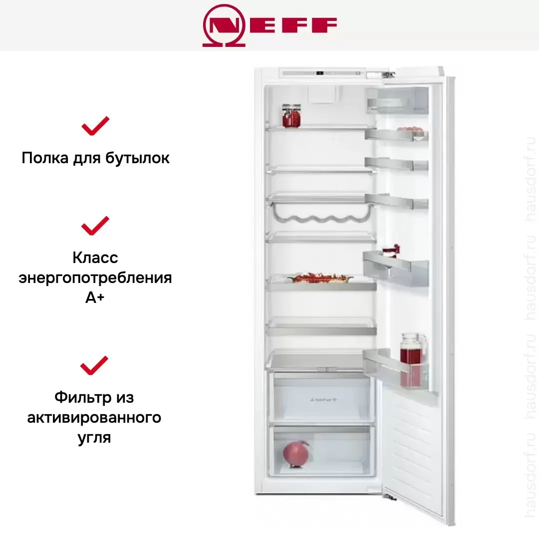 Встраиваемый холодильник Neff KI1813F30R — флагманская модель в линейке Neff (немецкого производства), холодильник класса люкс.