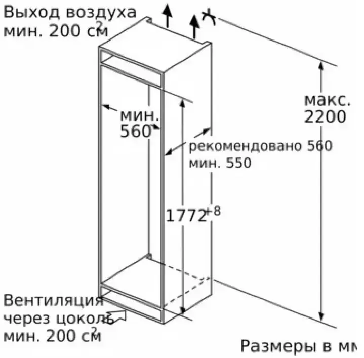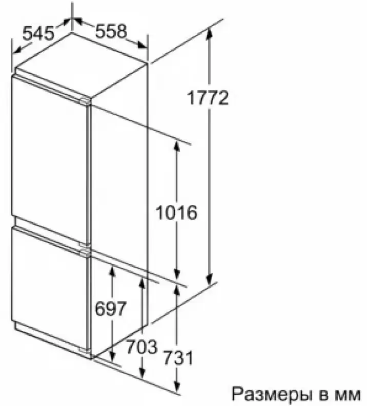Тип: встраиваемый. Вид: холодильник с морозильником.