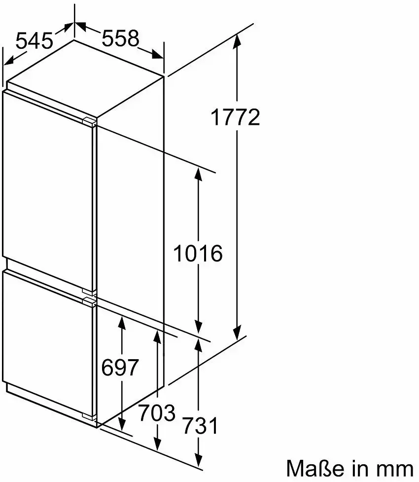 Тип: встраиваемый. Вид: холодильник с морозильником.