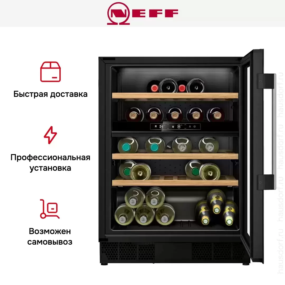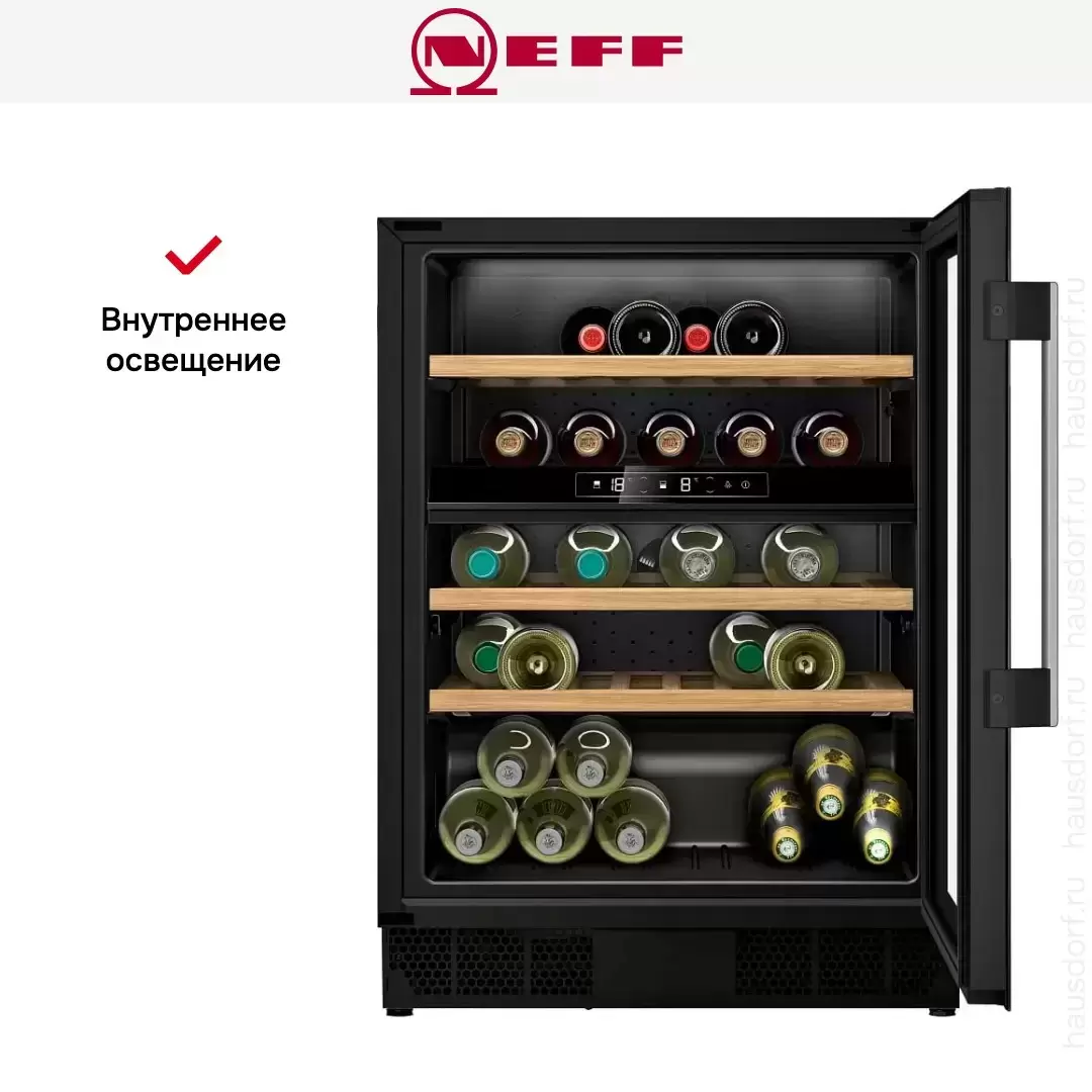 Встраиваемый винный шкаф Neff KU9213HG0 — флагманская модель в линейке Neff (немецкого производства), винный шкаф премиального сегмента.