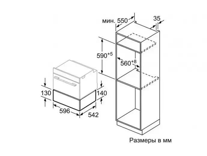 | Габариты ниши для встраивания (ВxШxГ), см | 14.1х56-56.8х55 |