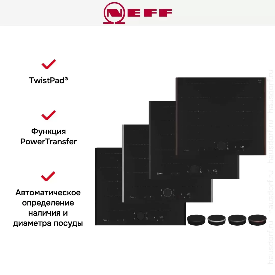 | Серийная комплектация | Кабель: без вилки Показанный Тwist Раd Flех® и фурнитуры планок к духовым шкафам NEFF не входит в комплект поставки и заказывается отдельно |