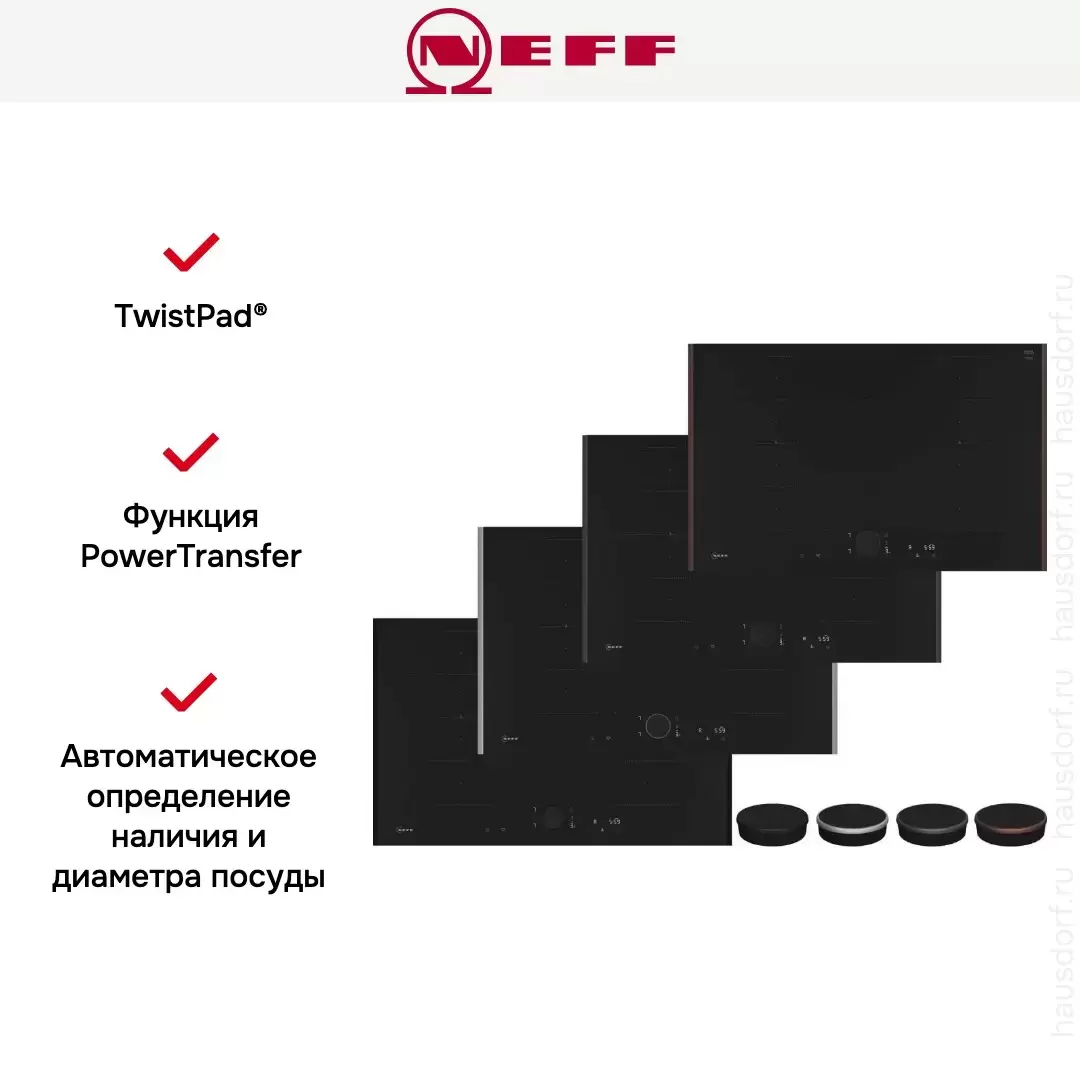 | Серийная комплектация | Кабель: без вилки Показанный Тwist Раd Flех® к варочным панелям NEFF не входит в комплект поставки и заказывается отдельно |