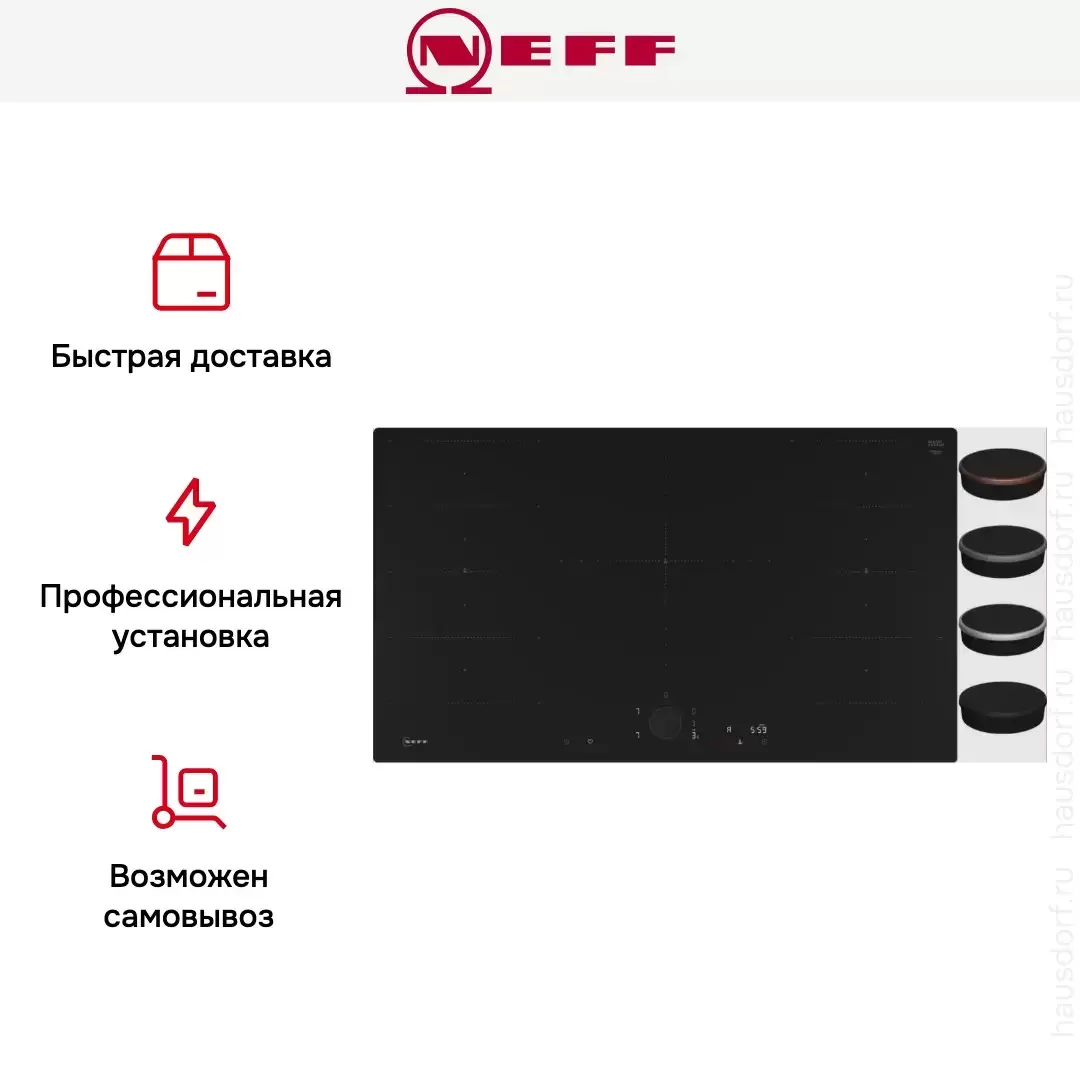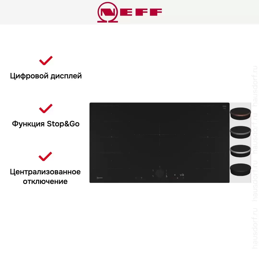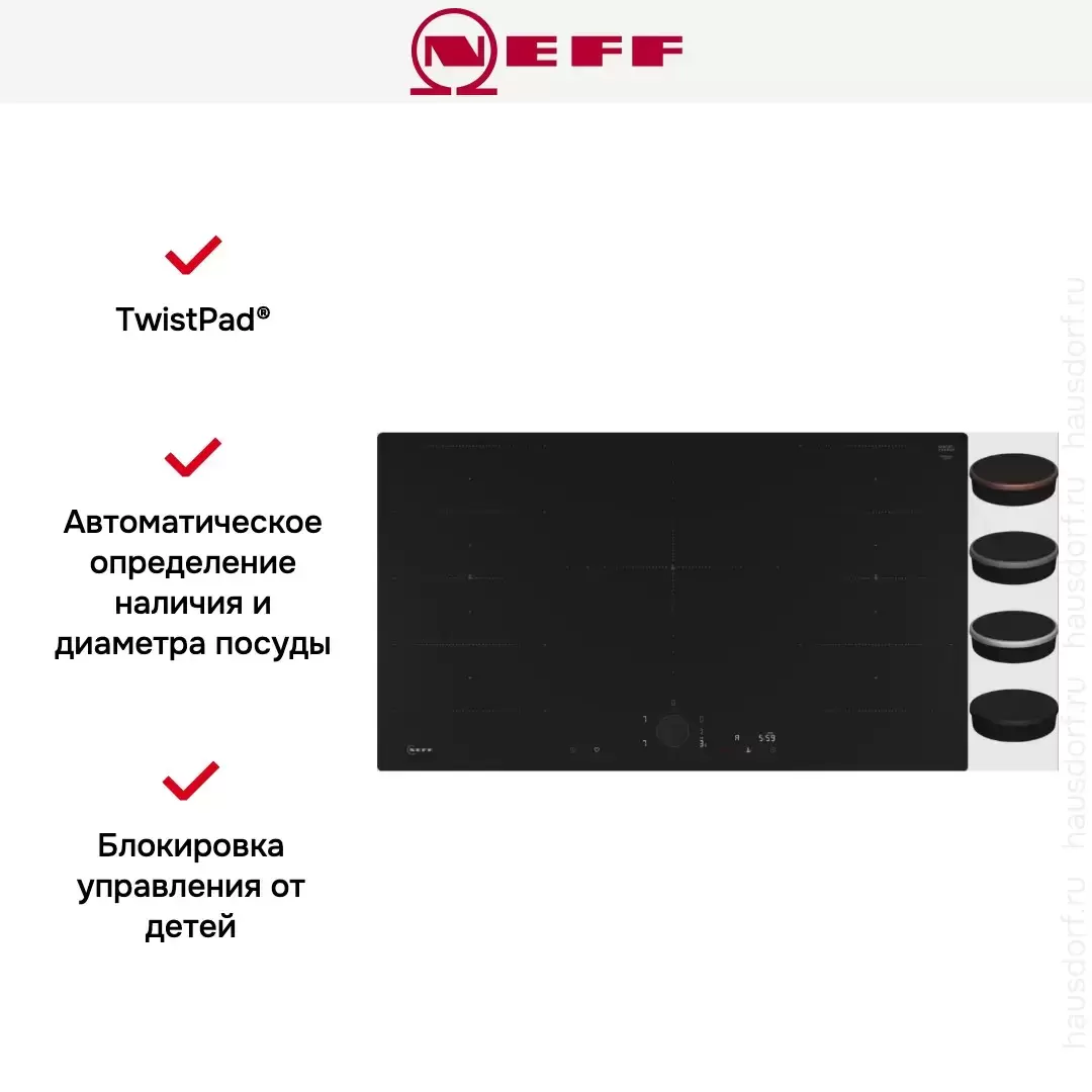 | Серийная комплектация | Кабель: без вилки Показанный Тwist Раd Flех® к варочным панелям NEFF не входит в комплект поставки и заказывается отдельно |