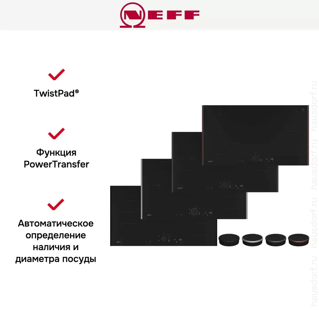 | Серийная комплектация | Кабель: без вилки Показанный Тwist Раd Flех® к варочным панелям NEFF не входит в комплект поставки и заказывается отдельно |