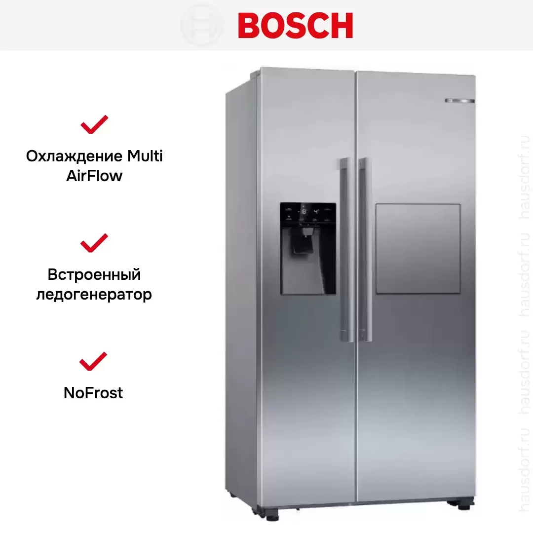 Холодильник Side-by-Side Bosch KAG93AI304 — холодильник высшего класса, немецкого производства, сочетающий надёжность и передовые технологии Bosch.