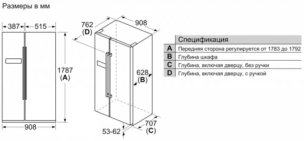 | Расположение морозильной камеры | Side-by-Side |