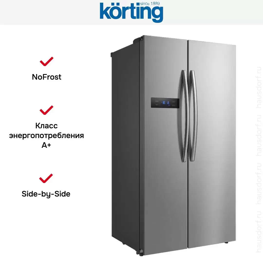 Холодильник Side-By-Side Korting KNFS 91797 X — холодильник премиум-класса, итальянского производства, сочетающий надёжность и передовые технологии Korting.