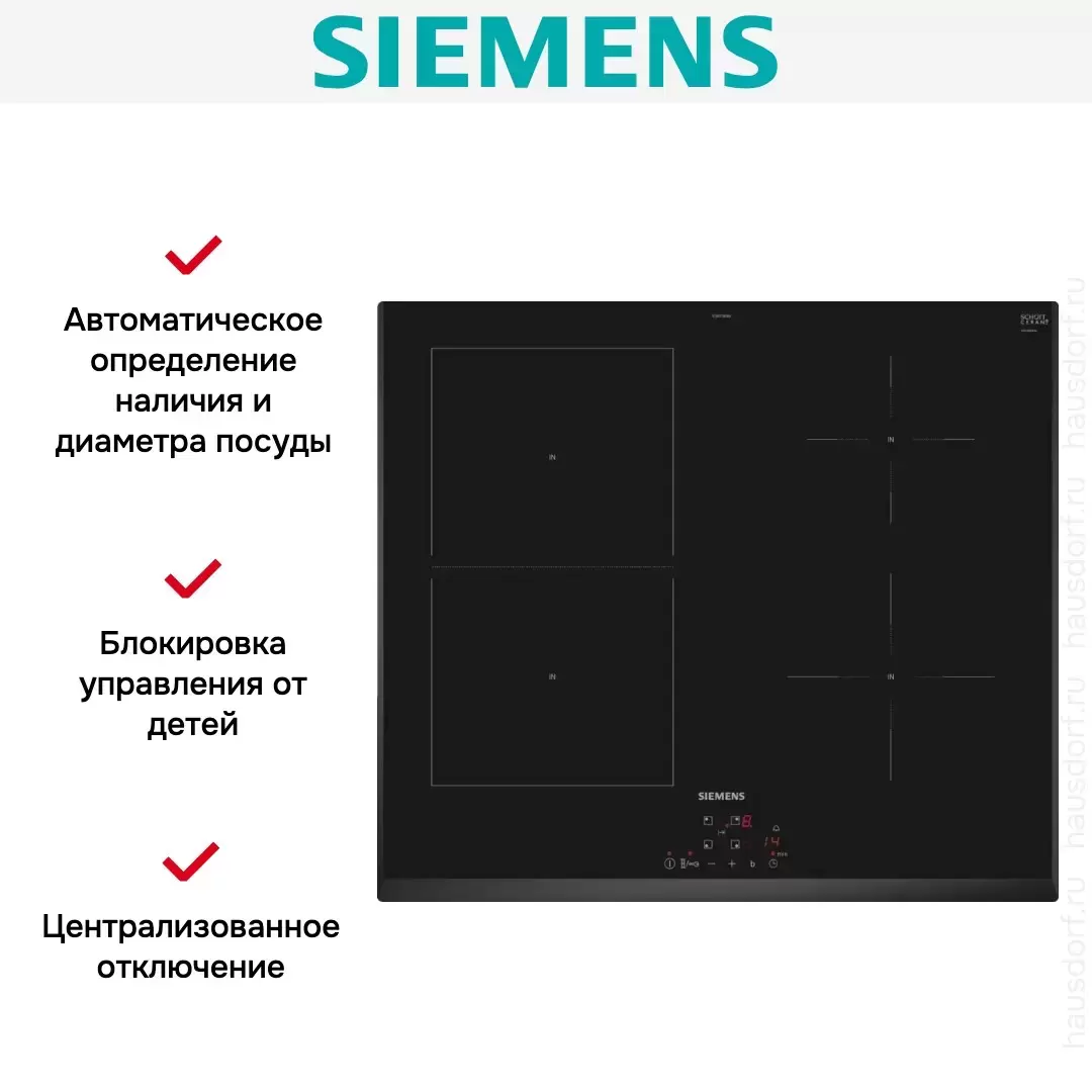 Индукционная варочная панель Siemens ED 651 BSB6E — варочная панель класса люкс от немецкого производителя Siemens.