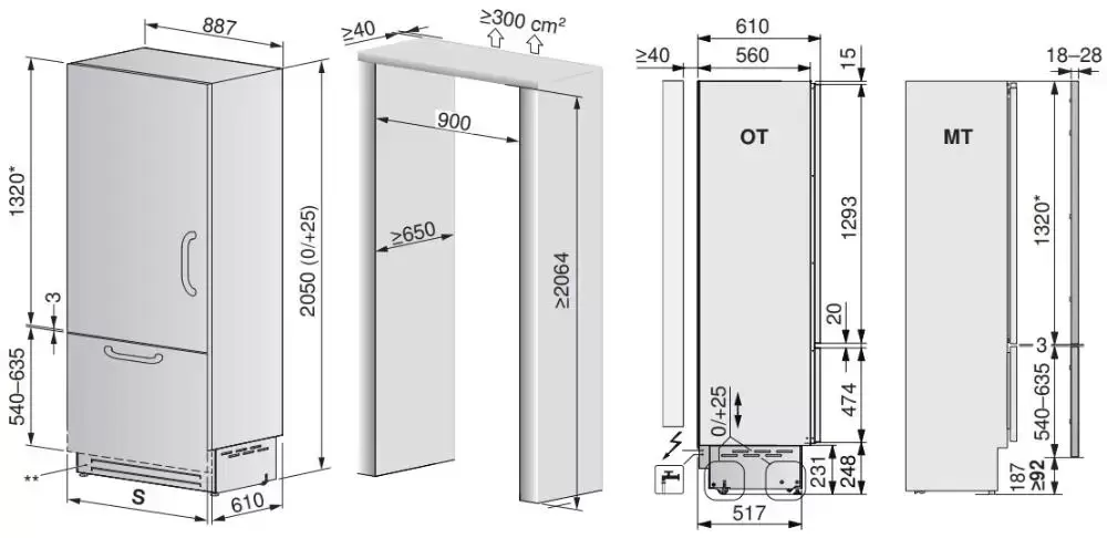 Тип: встраиваемый. Вид: холодильник с морозильником.