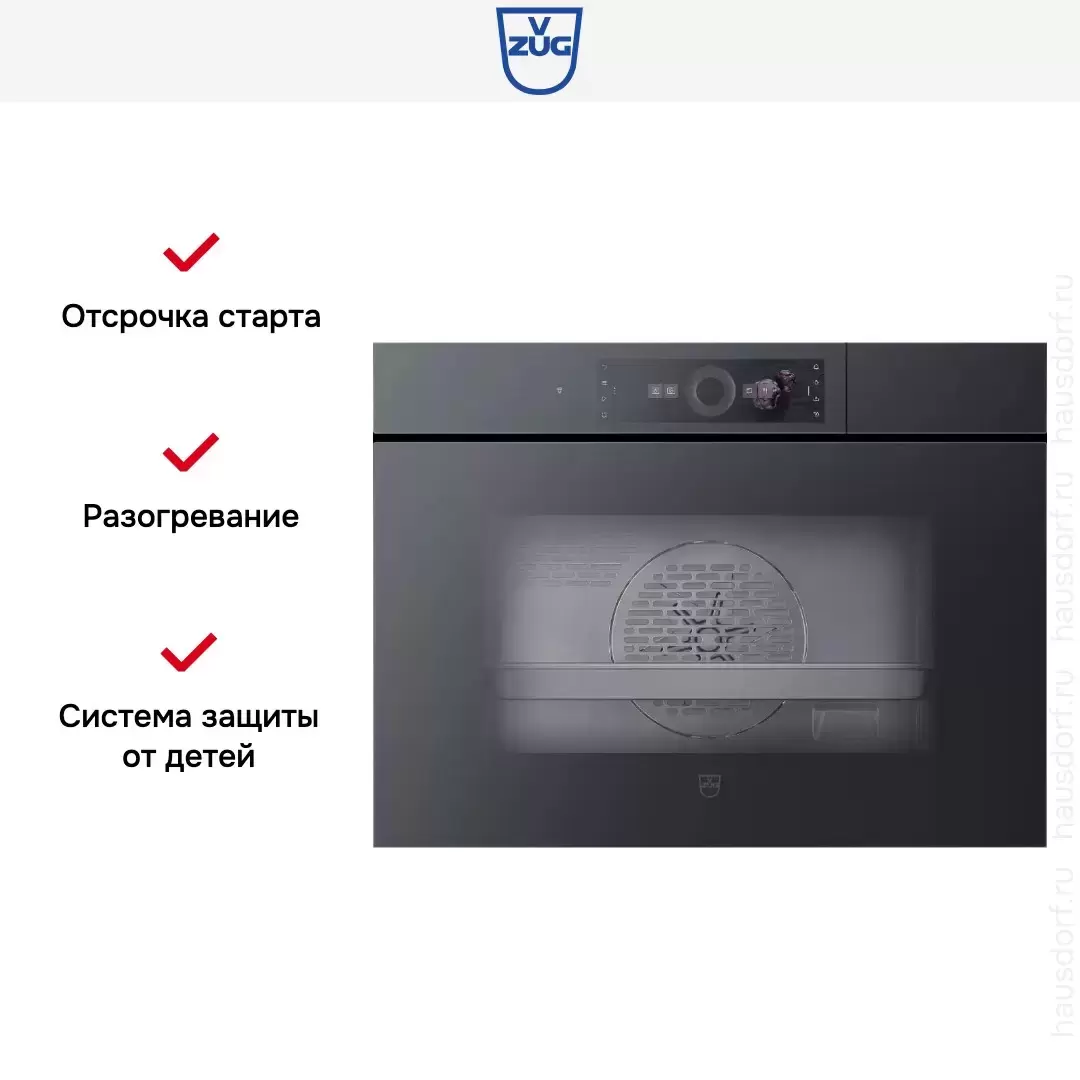 Встраиваемый паровой шкаф V-Zug CombiSteamer V6000 45 AutoDoor CS6T-23043 черное стекло — пароварка премиум-класса от швейцарского производителя V-ZUG.
