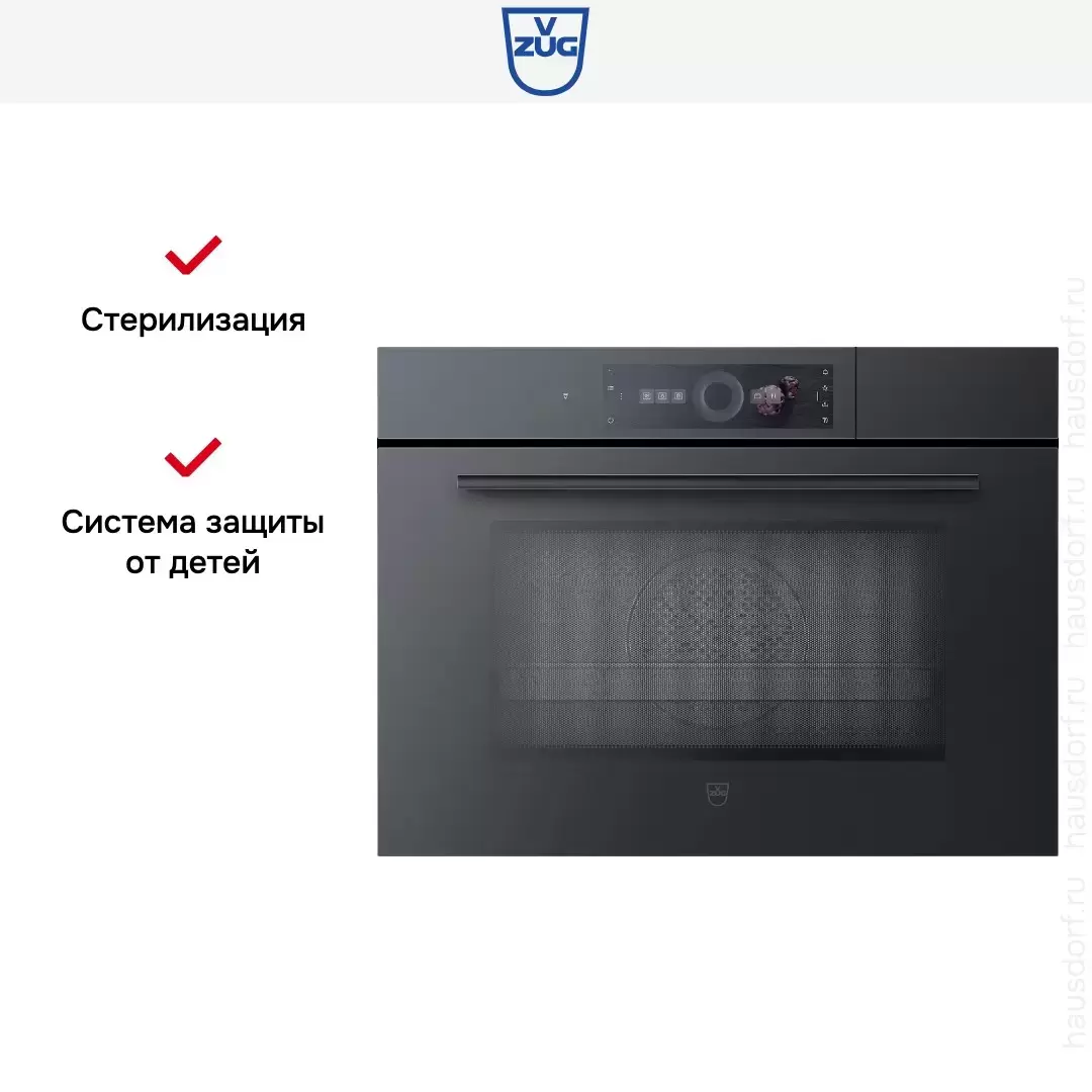 Встраиваемый комбинированный паровой шкаф V-ZUG CombiSteamer V6000 45M CSM6T-23041 (черное стекло) — флагманская модель в линейке V-ZUG (швейцарского производства), пароварка премиум-класса.