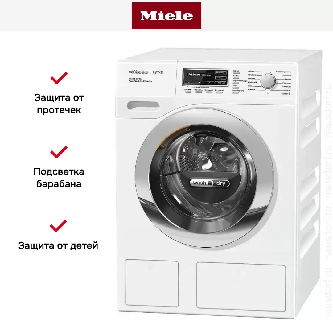 Стирально-сушильная машина Miele WTZH130WPM — флагманская модель в линейке Miele (немецкого производства), стиральная машина премиального сегмента.