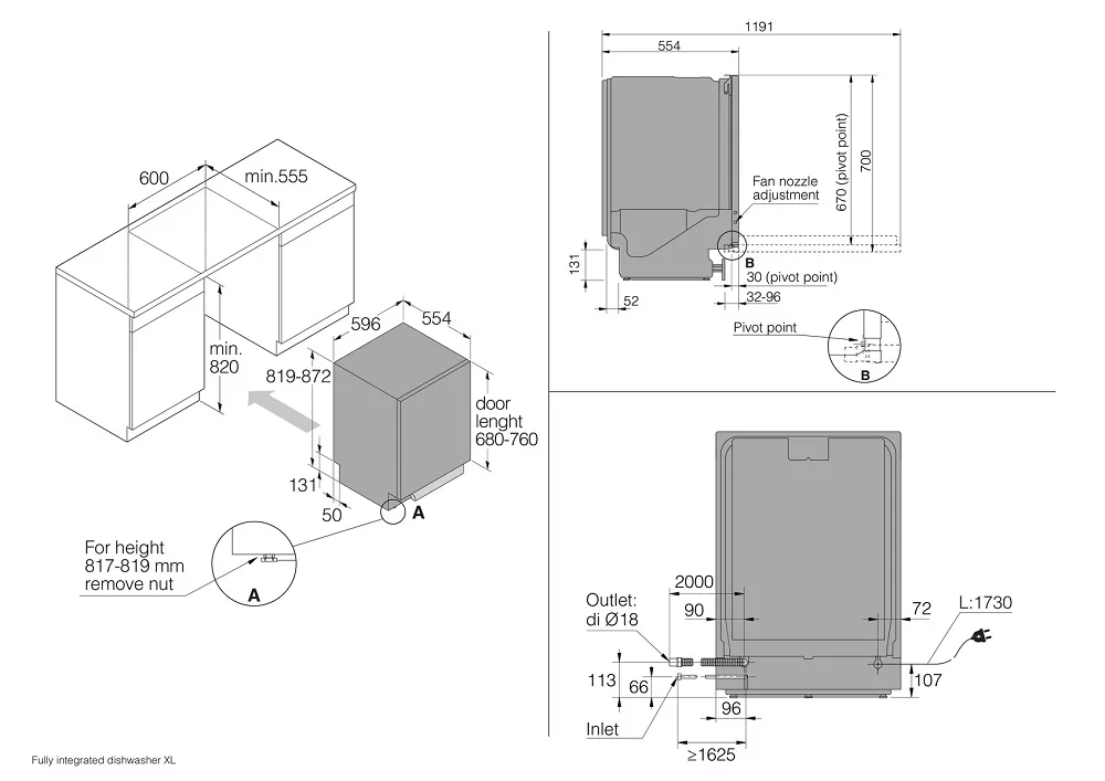 | Дополнительные параметры | 3 уровня загрузки Циркуляционный и сливной насосы оснащены бесшумными асинхронными двигателями Температура мойки от 51 до 70°C Встроенный антисифон |