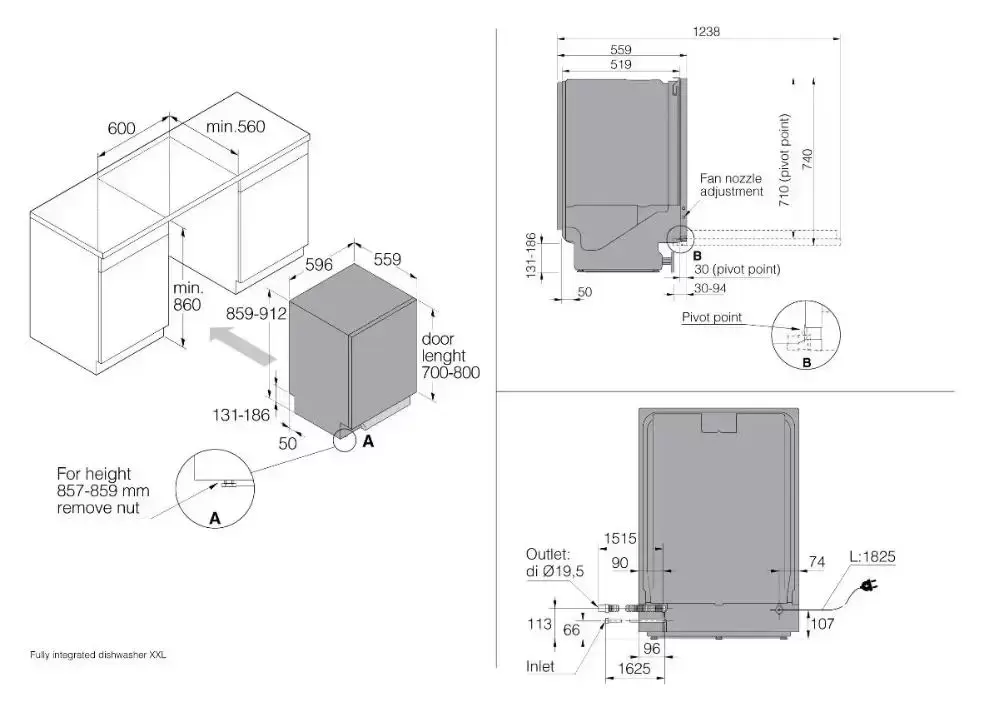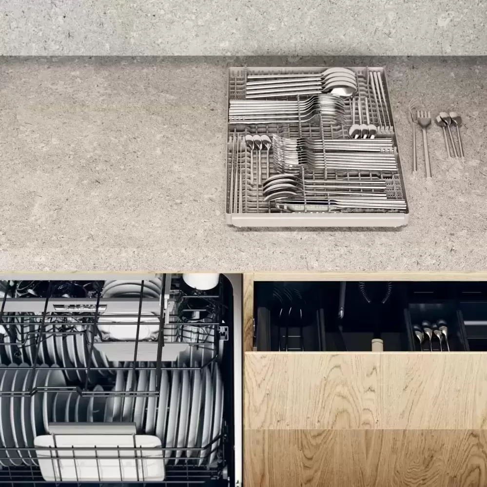 | Комплектация | Корзины из нержавеющей стали с нейлоновым покрытием Верхняя корзина Exclusive с частой решеткой, изменяемая по высоте: телескопические направляющие на шарикоподшипниках; защитная планка, предотвращающая контакт разбрызгивателя с посудой Нижняя корзина Exclusive: держатель для ваз и бутылок над форсункой JetSpray™ Средняя корзина: съемная корзина для длинных предметов; съемная корзина для мисок, чашек и стаканов; ручка; фланец с обратным клапаном; телескопические направляющие на шарикоподшипниках Верхняя корзина для столовых приборов «Липучки» для удобного монтажа двери Сливной насос с антиблокировкой |
