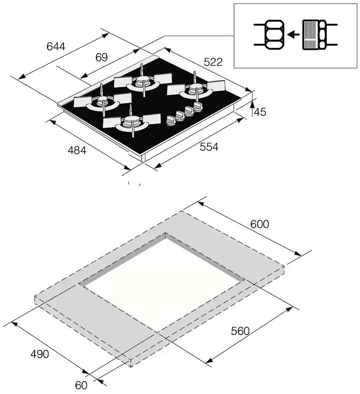 | Размеры ниши для встраивания (Ш х Г), см | 56х49 |