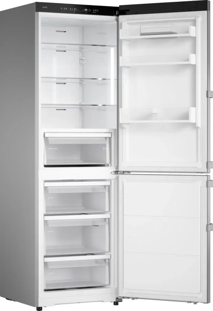 Инверторный компрессор плавно регулирует мощность вместо традиционного «вкл/выкл»: класс энергопотребления A++ (годовой расход 295 кВт·ч), уровень шума 34 дБ (тише шёпота), стабильная температура без скачков для лучшего хранения продуктов. LED-дисплей и сенсорные кнопки. Wi-Fi и приложение ConnectLife — управление со смартфона: контроль температуры, режимы Шаббат/Вечеринка/Очистка, удалённые уведомления о повышении температуры или незакрытой двери. Адаптивный температурный контроль автоматически корректирует работу компрессора в зависимости от частоты открываний и тепловой нагрузки. Контроль уровня влажности предотвращает обледенение продуктов.