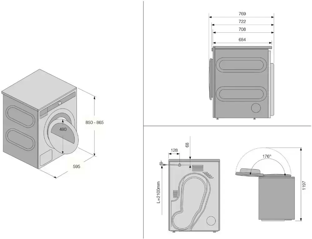 | Диаметр загрузочного люка (мм) | 340 |