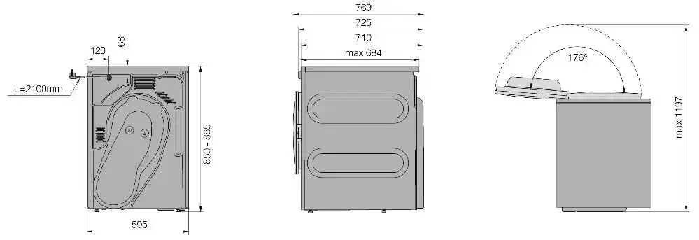 | Дополнительные параметры | Вентиляционное отверстие диаметром 100 мм: слева / справа / сзади Регулируемые ножки: 15 мм Взвешенное время программы (Tt): 130 мин Потребление в выключенном режиме: 0.4 Вт Расход электроэнергии за цикл: 1.88 кВтч |