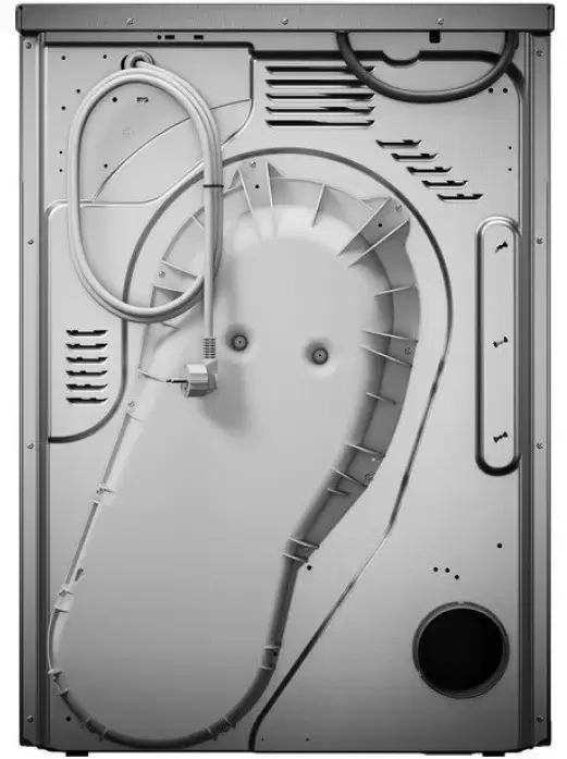 Вентилируемый тип сушки — горячий воздух нагнетается в барабан через тэн, проходит через бельё и выводится через вентиляционный канал на улицу или в систему вентиляции помещения. Преимущества: быстрая сушка (40–60 минут типичный цикл против 90–120 у тепловых насосов), простая конструкция (нет компрессора и хладагента, меньше деталей, длительный ресурс), низкая стоимость владения. Недостаток: повышенное энергопотребление (класс B против A++ у тепловых насосов) — но в коммерческих условиях скорость сушки часто важнее экономии электричества: больше циклов в день = выше выручка прачечной.