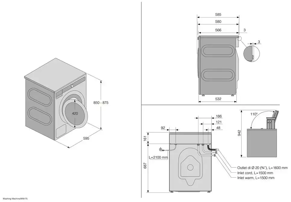 | Особенности | Дозатор для жидкого моющего средства Подключение к горячей воде Quattro Construction™ Дверца Steel Seal™ Возможность установки Side-by-Side |