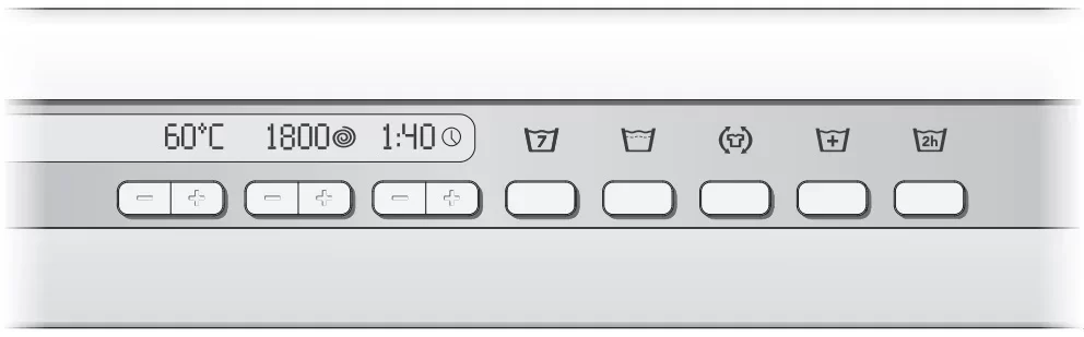 Оснащена функцией обычная экспресс-стирка (быстрая, ежедневная, короткая, освежить, экономичная, мини-программа).