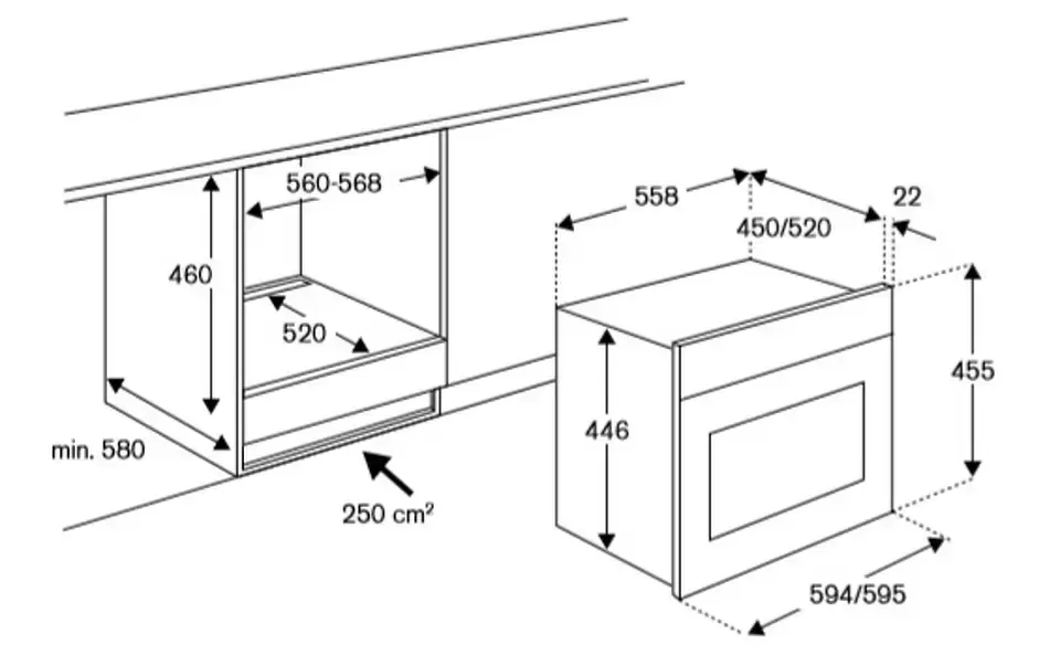| Размеры ниши для встраивания, ВхШхГ (см) | 45х56х55 |