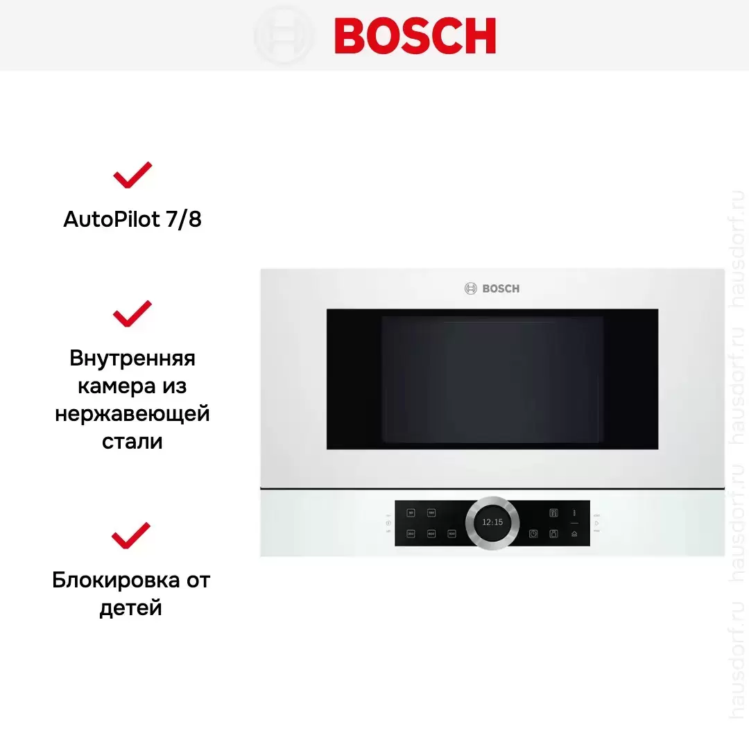 Встраиваемая микроволновая печь Bosch BFL 634GW1 — микроволновая печь высшего класса, немецкого производства, сочетающая надёжность и передовые технологии Bosch.