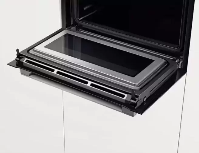 | Дополнительные параметры | Поворотный переключатель ControlRing Три 2,5” цветных сенсорных TFT дисплея Кнопка "Info" Конвекционный вентилятор из нержавеющей стали Температура нагрева наружного стекла до 40 ºС Предложение по установке температуры Дверца с SoftClose и SoftOpening 5 уровней мощности микроволн (90 Вт,180 Вт, 360 Вт, 600 Вт,900 Вт) Инвертор LED - освещение |