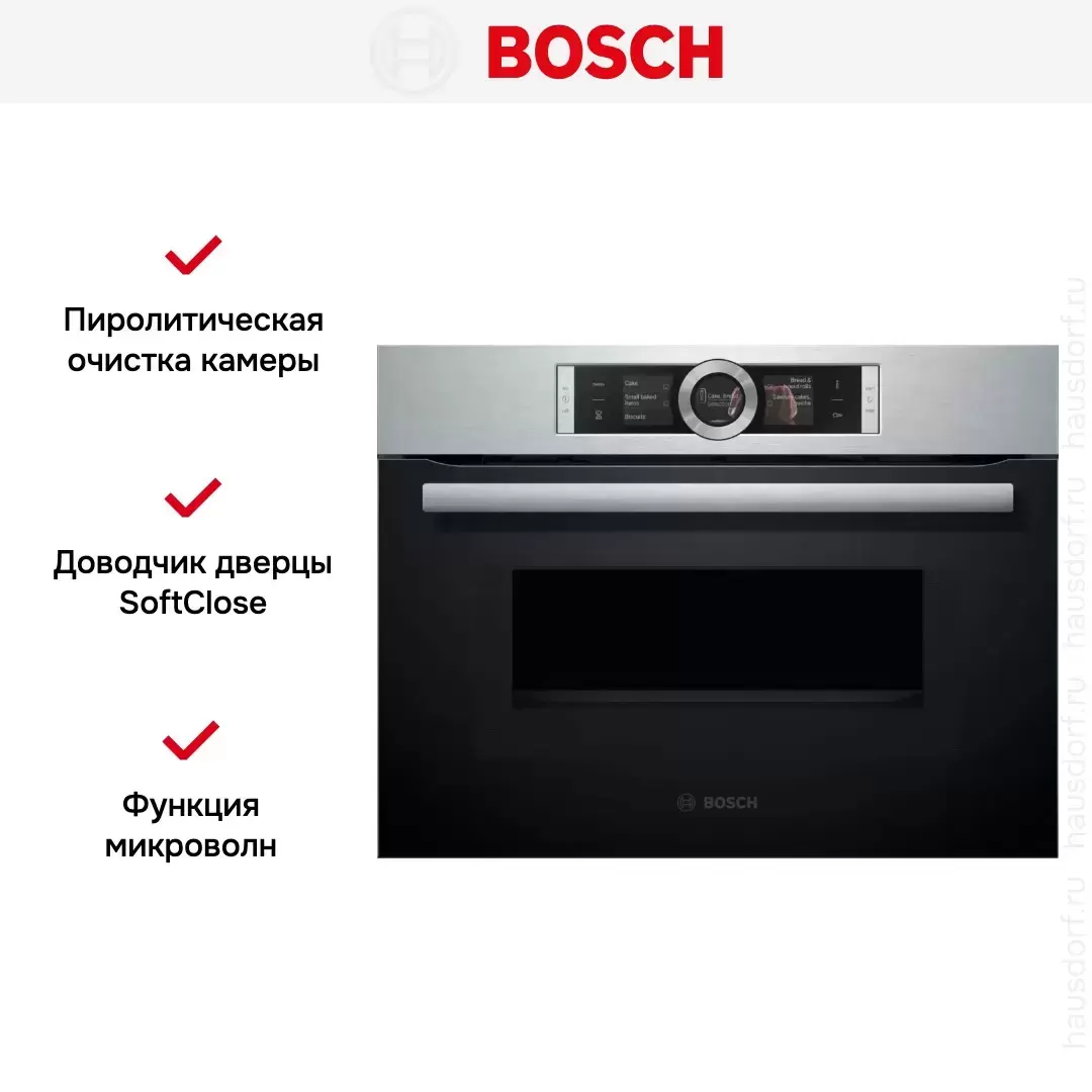 Компактный духовой шкаф Bosch CMG676BS1 — флагманская модель в линейке Bosch (немецкого производства), духовой шкаф высшего класса.