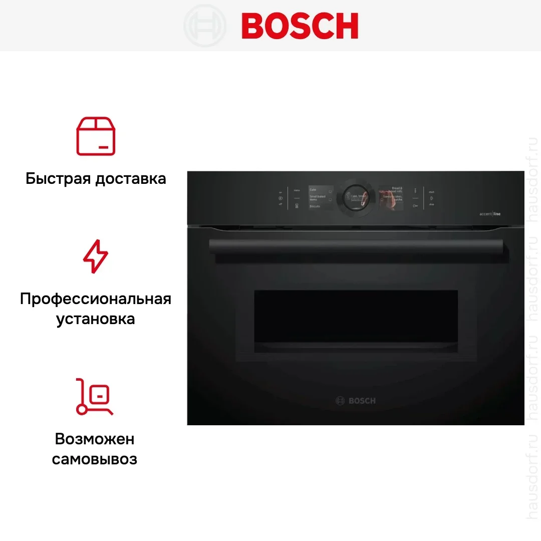 Компактный духовой шкаф Bosch CMG8764C7 — духовой шкаф премиум-класса, немецкого производства, сочетающий надёжность и передовые технологии Bosch.